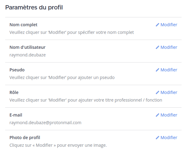 modifie ensuite le champ Pseudo, c'est ce champ qui sera affiché aux autres utilisateur·ices