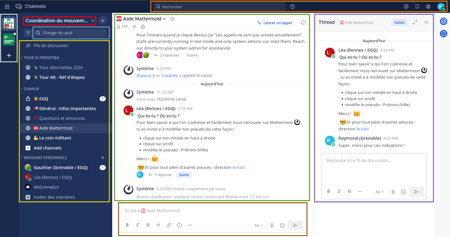 Tu es perdu⋅e ? Tu peux écrire à mattermost@alternatiba.eu ou sur le canal 🆘 Aide Mattermost. On est là pour t’aider !
